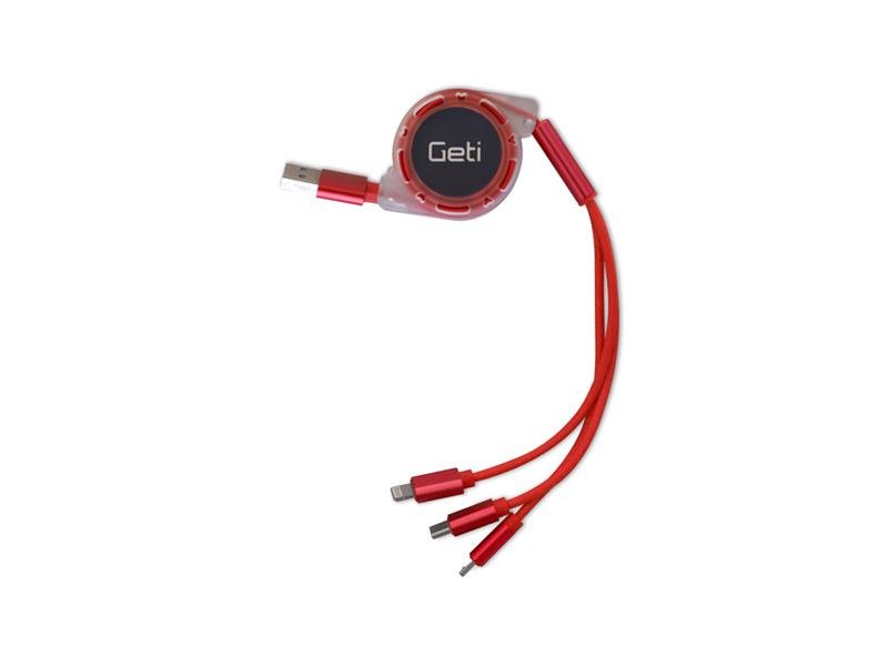 Kabel Geti GCU 02 USB 3w1 czerwony samonawijający się