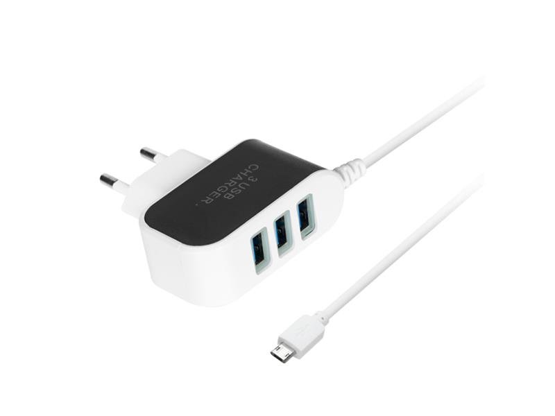 Nabíječka telefonuTechnické parametry:- Typ: Síťová- Konektivita: Micro USB- Typ připojení: pevný kabel zakončený Micro USB konektorem + 3 USB konektory- Vstupní napětí: AC 100-240 V / 50-60 Hz- Výstupní napětí: 5 V- Výstupní proud: 3100 mA- Ochrana: Proti přebíjení a přepětí-... przeczytaj całość