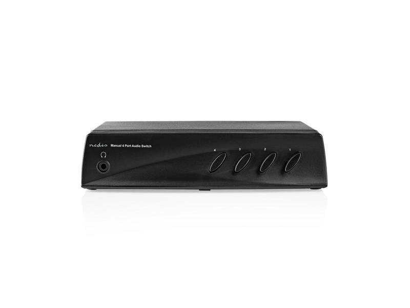 Přepínač 4x CINCH - 2x CINCH NEDIS ASWI2414BK Tento audio spínač pro systém domácího kina Vám umožňuje přepínat mezi čtyřmi zdroji. Zdroj lze vybrat pomocí některého ze čtyř spínačů na čelní straně. Můžete také na čelní stranu připojit sluchátka a vypnout audio...