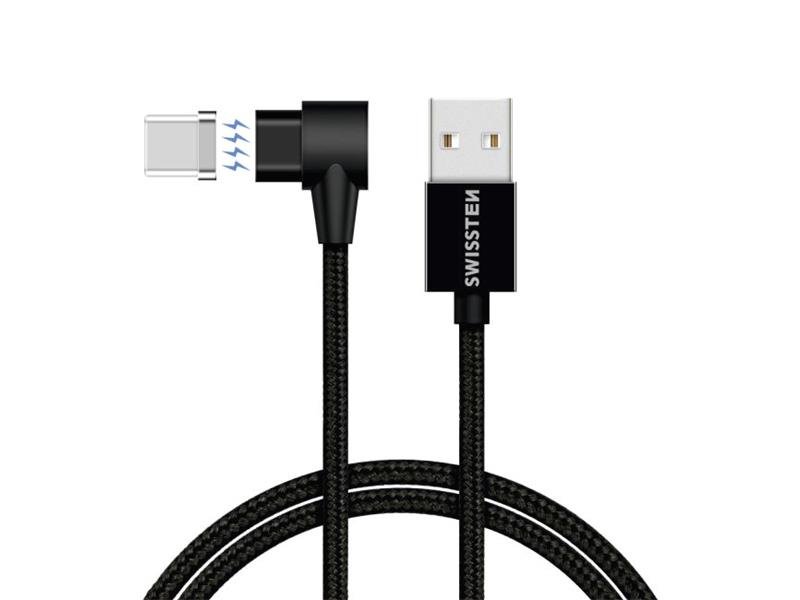Kabel SWISSTEN USB/USB-C 1,2m černý magnetický textilní