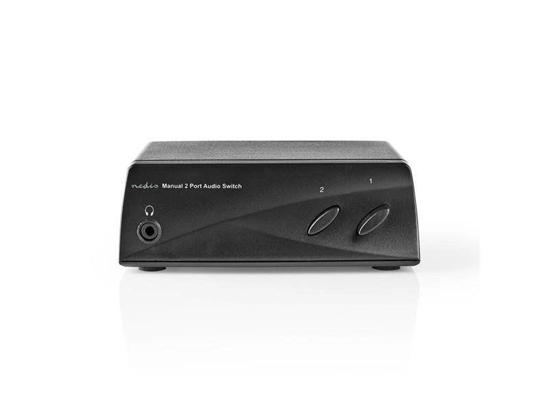 Přepínejte mezi dvěma zdroji zvuku připojenými k jednomu přijímači pomocí tohoto Nedis® audio spínače. Zvolte zdroj stisknutím jednoho ze dvou spínačů na přední straně. Můžete také připojit sluchátka. Berte na vědomí, že sluchátka automaticky převezmou zvukový signál z přijímače připojeného k výstupu.