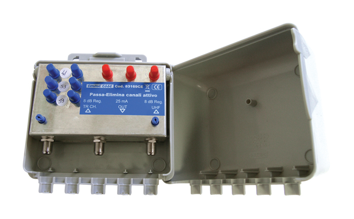Anténní slučovač+zesilovač Emme Esse 83169CE, UHF+3 laď. kanály např.(41,53,59), na stožár