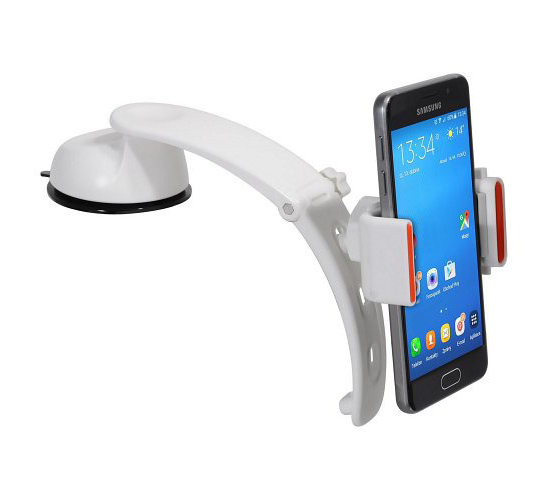 Držák telefonu s pevným klipem volitelné šířky (5,5 – 8,5 cm), který je zajištěn aretací a zároveň i protiskluzovou vrstvy na vnitřních stranách.