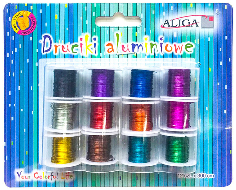 Druciki aluminiowe na szpulkach 0,3 mm x 3 m 12 kolorów DA-3687, Aliga
