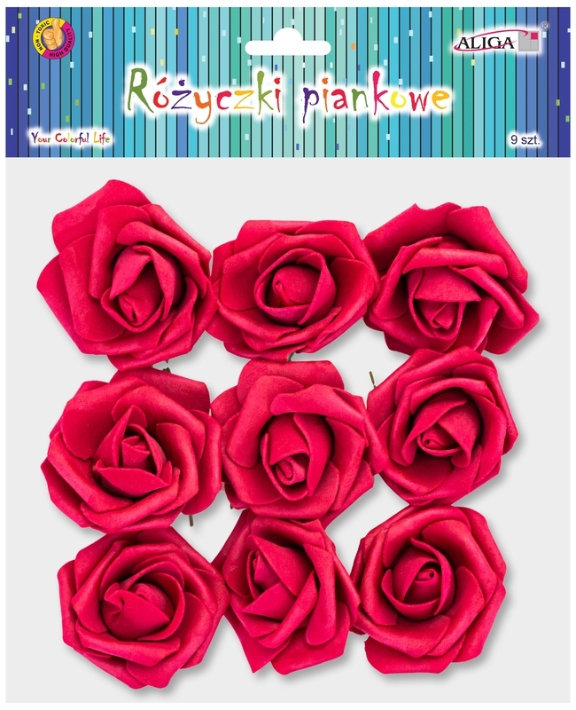 Różyczki piankowe na drucikach. Opakowanie zawiera 9 szt. Rozmiar: 6 cm. Długość: 14 cm. Sposób pakowania: 1/12/144 przeczytaj całość