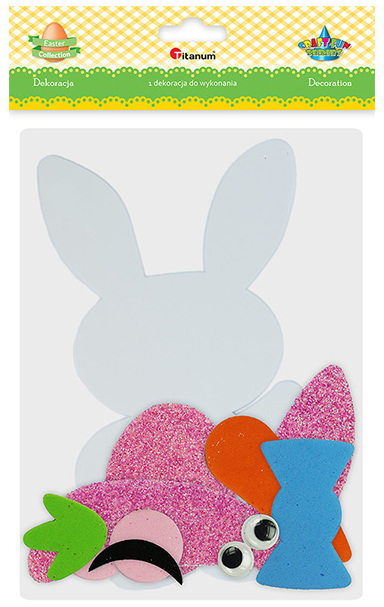 Piankowy zając z marchewką, zestaw do złożenia. Wymiary: 140x 235 mm, ruchome oczy. Blister: 1 szt. przeczytaj całość