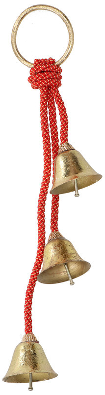 Dzwonki metalowe 3szt, złote na czerwonym sznurku, Incood