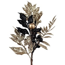 Gałązka złoto-czarne liście ze złotą bombką zdobiona brokatem, Ziemia Obiecana