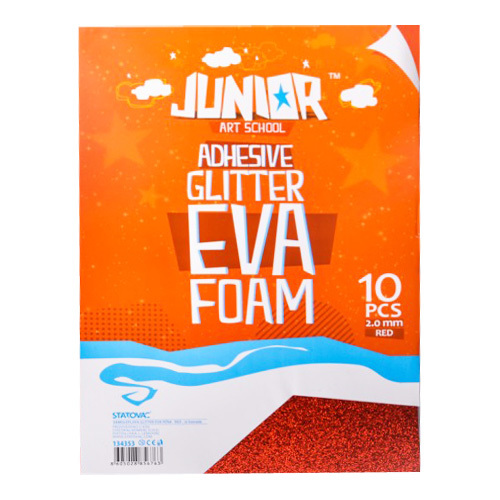 Dekorační pěna A4 EVA 10 ks červená samolepicí glitter 2,0 mm