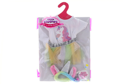 Oblečení pro panenku - sada obsahuje bodáčko a obrázkem jednorožce, tutu sukýnku v duhových barvách a čelenku a jednorožčím rohem.. Rozměry bodýčka - délka 20 cm, šířka 12 cm (bezrukávků), rozměry sukýnky 13,5x11 cm. Baleno v sáčku. Věk 3+ przeczytaj całość