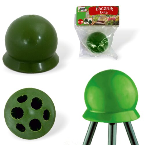 Kulowy łącznik z otworami umożliwia stworzenie solidnej konstrukcji, która podtrzymuje i chroni roślinę. Kulowy łącznik do prętów stosuje się do roślin pnących, np. bluszczu. Pręty połączone z wytrzymałą kulą zyskują większą stabilność i sztywność, dzięki czemu cała konstrukcja jest bardziej odporna na surowe warunki atmosferyczne. Kula ma trzy otwory na pręty o średnicy 8 mm i trzy otwory na pręty o średnicy 11 mm. Za pomocą kulowego łącznika można łatwo stworzyć stabilne podpory w kształcie stożka lub piramidy.