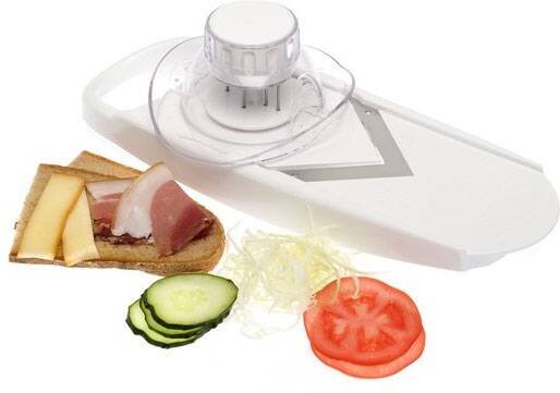 - V každé kuchyni si najde svoje místo, protože za několik sekund nakrájí dokonce i suché potraviny! - Rychlo a rovnoměrně nakrájené různé druhy potravin: zerlí, sýr, pevné druhy chleba, suché salámy a ostatní ovoce a zelenina. - Obsahuje šikovný držák, který pevně drží potraviny během krájení a chrání prsty před poraněním. - Funkce zámku pro ochranu před zraněním během čištění - Možnost přesného nastavení hrubosti krájení – od tloušťky papíru až po 3mm resp. 6mm silné plátky - Nůž ve tvaru V a nastavitelná plocha pohybující se v paralelním směru zajišťuje rovnoměrnou sílu krájení. - Kráječ »V« tvaru je vyrobený z nerezové oceli a díky svému tvaru výrazně ulehčí krájení. - Byla mu udělena Bronzová plaketa pro inovaci v roku 2008 Hospodářskou komorou Slovinska v oblasti Dolenjská a Bela krajina v Slovinsku