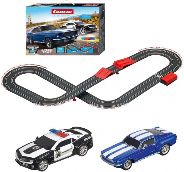 Autodráha Carrera GO!!! dlouhá 4,3m s auty Ford Mustang a Chevrolet Camaro obsahuje skokánek, rovinky, zatáčky, přemostění, napájecí díl na baterie a další díly. Autodráha je kompatibilní s auty a díly GO!!!. Do napájecího dílu je možné dát buď baterie nebo trafo (kód 61531 - nejsou součástí...