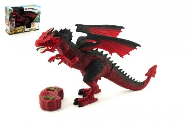 Drak chodící RC 50cm plast na baterie se zvukem se světlem v krabici