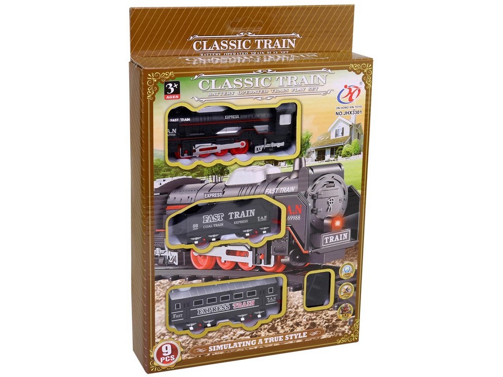 Zestaw pociągowy na baterie z oświetleniem, 20,5 x 4,5 x 31,2 cmZabawka przeznaczona dla dzieci 3+.Wymiary zabawki: 20,5 x 4,5 x 31,2 cm.Materiał zabawki: plastik.Opakowanie zabawki: pudełko.Produkt przeznaczony dla chłopców.Do uruchomienia produktu potrzebne są 2 baterie AA.Baterie nie są... przeczytaj całość