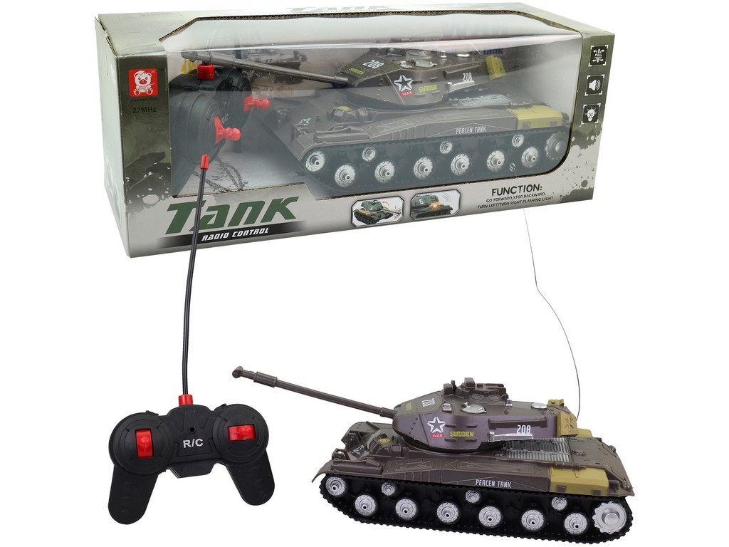 Tank vojenský na dálkové ovládání, světlo, zvuk, 11,5 x 29,5 cm potěší všechny malé nadšence do bitev. Snadné ovládání může vést k víře na bitevním poli. Můžete otáčet věží s hlavní o 360° a pohybovat s ní nahoru a dolů. Ke zprovoznění produktu je potřeba celkem 6 AA baterií, které nejsou součástí balení.Materiál: plast.Rozměr produktu: 29,5 x 11,5 cm.Rozměr balení: 33 x 12,5 x 12,5 cmVhodné pro děti od 3 let.