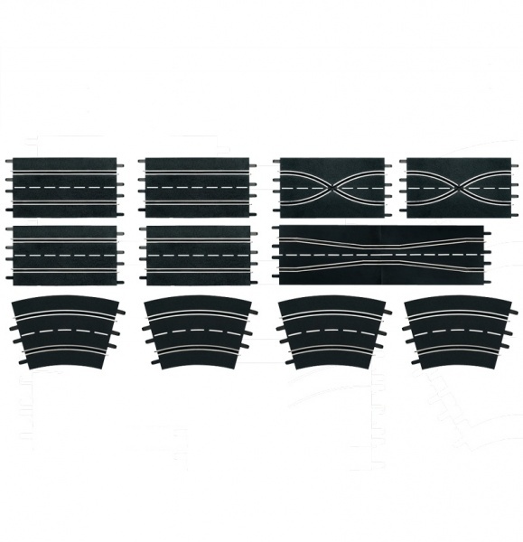 Rozšiřující set pro autodráhy EVOLUTION, Digital 132 a Digital 124.V balení jsou:- 4 standardní rovinky- 2 překřížení dráhy- 1 šikana (skládá se ze dvou dílů a 34,5cm)- 4 zatáčky 2/30°- svorky tratiCelkem rozšíření měří 3,8m. przeczytaj całość