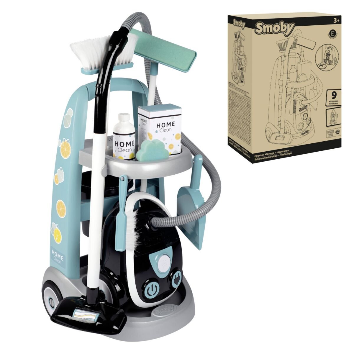 Úklidový vozík s vysavačem s příslušenstvím. Dětský vysavač vydává skutečný zvuk vysavače. Díky kompaktní velikosti a nízké hmotnosti je snadno ovladatelný i pro menší děti od 3 let. Další příslušenství k úklidovému vozíku: lopata a smeták, mop a makety obalů od čisticích prostředků. Rozměry... przeczytaj całość