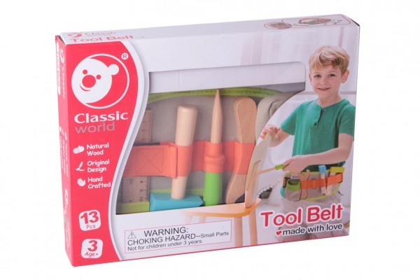 Sada nářadí s opaskem 13ks dřevo/látka v krabici 32x25x5cm