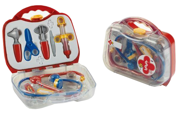Doktorský set v průhledném kufříku. Stetoskop, teploměr, injekce… Vše co potřebuje lékařka. Vhodné pro děti od 3 let. przeczytaj całość