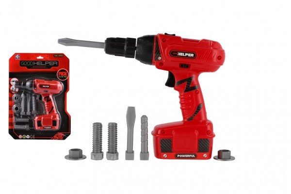 Aku Vrtačka nářadí plast 18x17cm s doplňky na baterie se zvukem na kartě 23x32cm