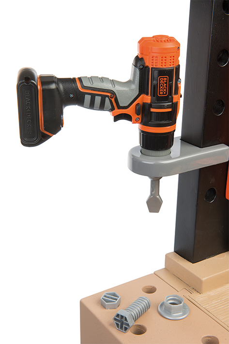 Velká pracovní dílna v licenci Black&Decker nadchne každého malého kutila. Pracovní deska s imitací dřeva. Obsahuje svěrák, mechanickou vrtačku/šroubovák, další nářadí, přihrádky, závěsy a další. Nechybí ani speciální místo pro zatloukání hřebíků. Součástí i úžasné auto pro montáž/demontáž. Auto...