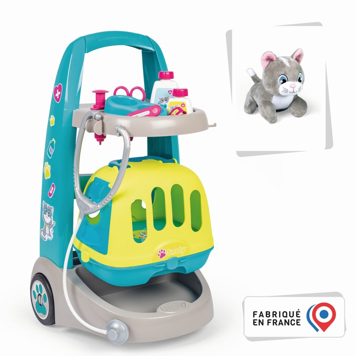 Veterinářský vozík s měkkou plyšovou kočičkou, přepravním boxem 2 v 1 s odnímatelným mobilním lékařským kufrem a spoustou příslušenství. Díky kolečkům s lehkým chodem je mobilní lékařský vozík ovladatelný a lze jej snadno řídit. Příslušenství obsahuje vše, co skutečný veterinář potřebuje k léčbě...