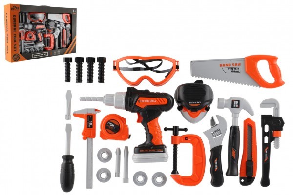 Chceš pomáhat tatínkovi při opravách doma a chybí ti ve tvé výbavě vrtačka? Nevadí! S tímto setem ti půjde vše od ruky a třeba dostaneš od maminky sladkou odměnu za odvedenou práci! Aku vrtačka se po zmáčknutí tlačítka točí a má vyměnitelné vruty. Vydává reálný zvuk. Sada obsahuje spoustu různých druhů nářadí.