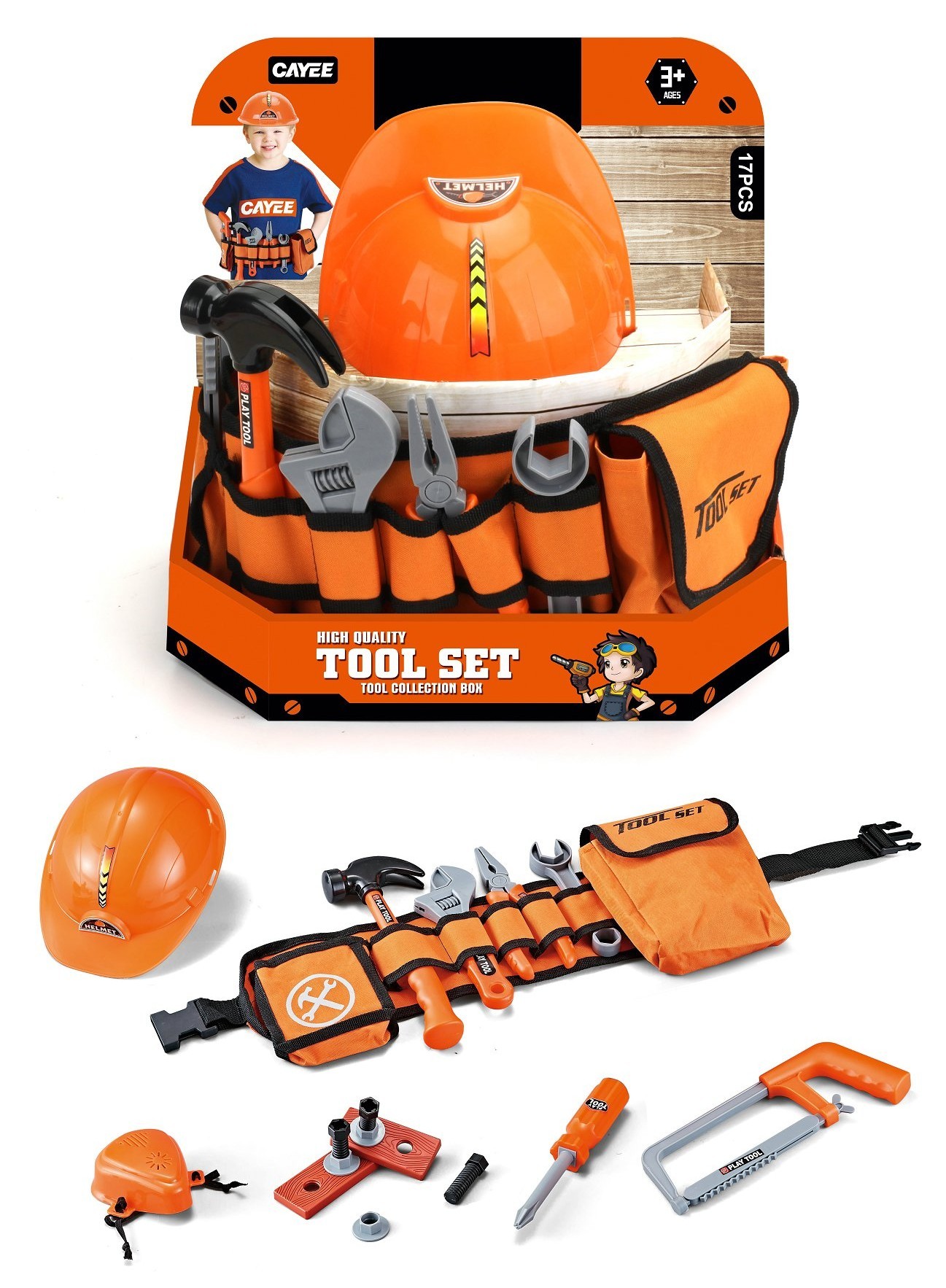 Nářadí s textilním opaskem. Obsahuje textilní opasek, přilbu, roušku, pilku, kladívko, kombinačky, hasák, šroubovák, klíč, 2 dřívka, 3 šrouby, 3 matice. przeczytaj całość