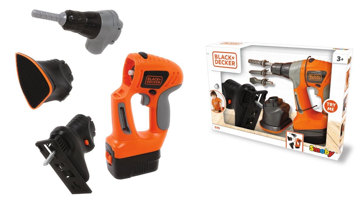 Elektronarzędzie z gumowym uchwytem i z 3 wymiennymi częściami: wiertarka, wyrzynarka, szlifierka obrotowa. Wymiary: 20 x 17,50 x 5 cm. przeczytaj całość