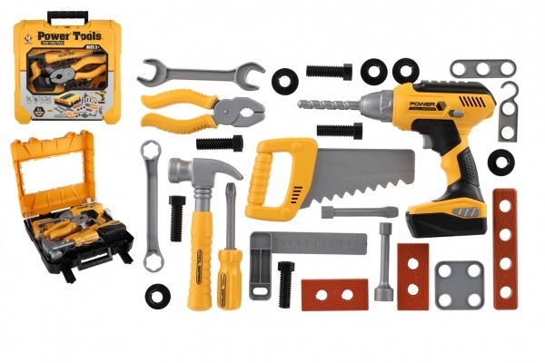 Sada nářadí plast s aku vrtačkou 16x17cm na baterie se zvukem v plastovém boxu 26x25x9cm