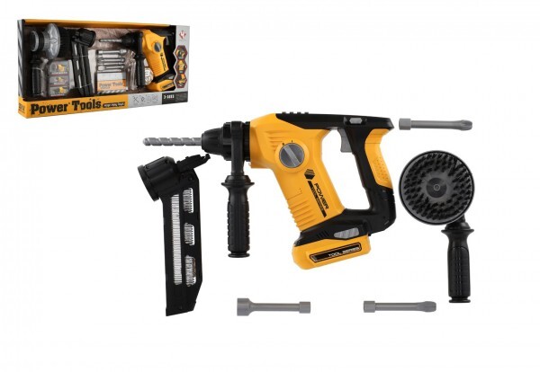 Příklepová vrtačka s doplňky plast 30x18cm na baterie se zvukem v krabici 53x25x7cm