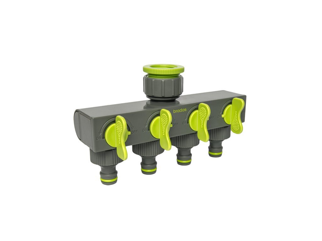 LIME LINE rozdělovač, 4-cestný ventil 1"-3/4"Rozdělovač se čtyřmi nezávisle na sobě nastavitelnými ventily na kohoutek 1" s redukcemi 3/4". przeczytaj całość
