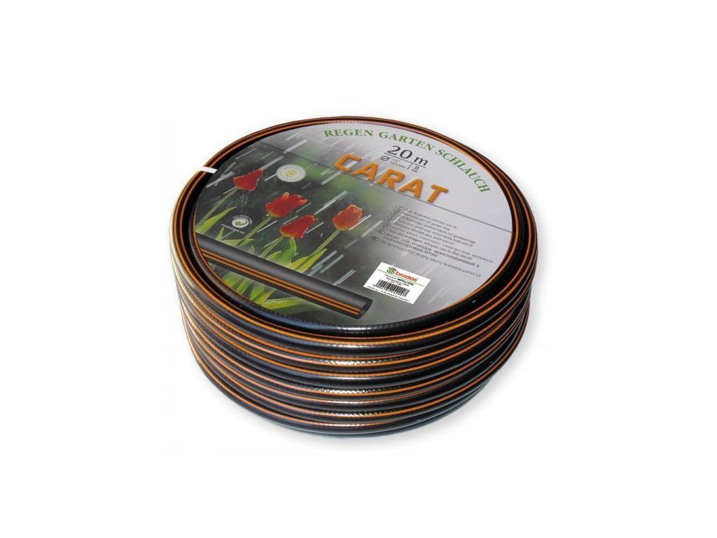 Zahradní hadice 50m, 3/4" CARATTřívrstvá, vyztužená zahradní hadice (8 Bar) CARAT je vyrobena z měkčeného PVC. 1. vrstva - vnitřní černé PVC odolné vůči UV a nečistotám2. vrstva - pletené křížové syntetické vlákno3. vrstva - vnější černé PVC s dvěma oranžovými pruhyProdáváme v různých průměrech a... przeczytaj całość