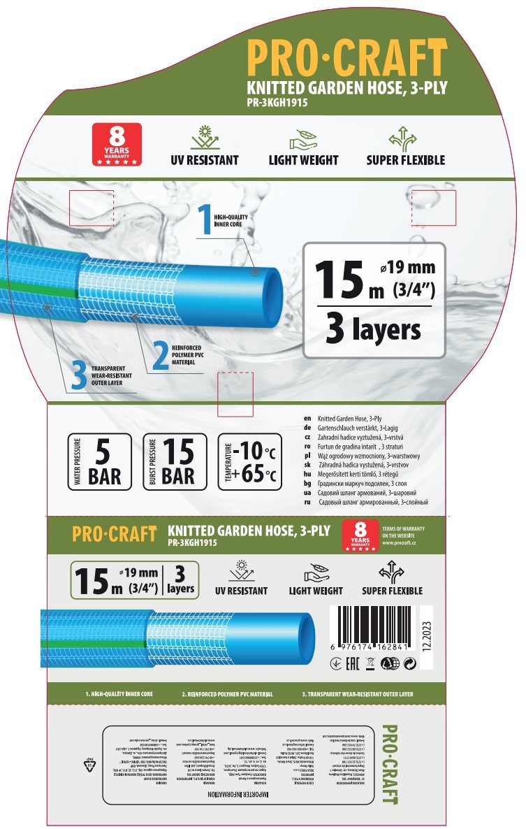 Zahradní hadicí Procraft PR-3KGH1915 3 vrstvy, 3/4" 15 m | PR-3KGH1915
