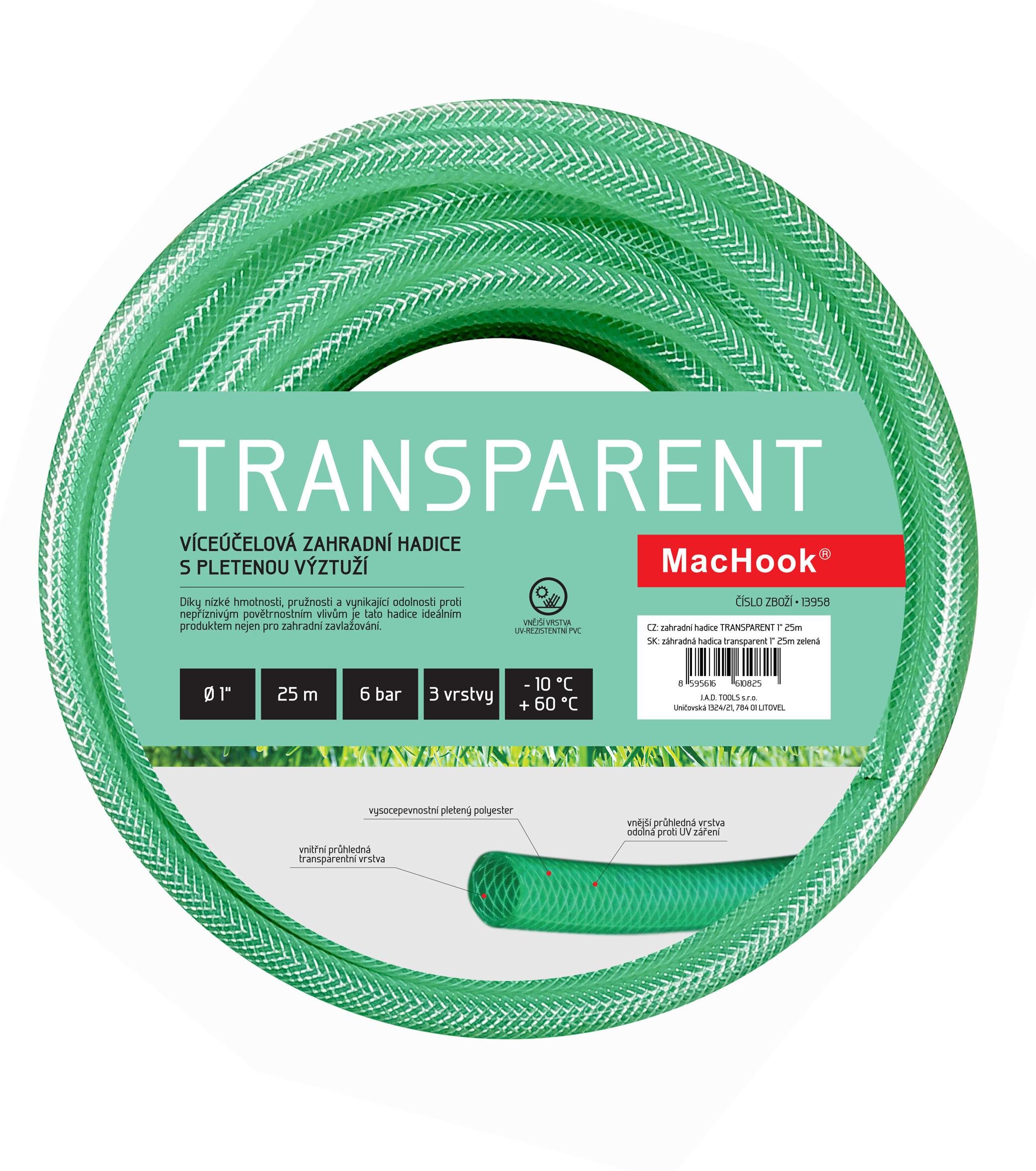 zahradní hadice TRANSPARENT 1" 25m zelená