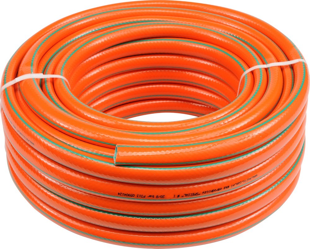 Třívrstvá zahradní hadice z pružného plastu s výztuhou příze. Odolná vůči procesům stárnutí, UV záření a usazování nečistot. Hadice je pružná i při nízkých teplotách.tlak (bar)15délka20barvaoranžováprůměr (palce, inch) 1pracovní teplota (°C)-10 DO +60 przeczytaj całość
