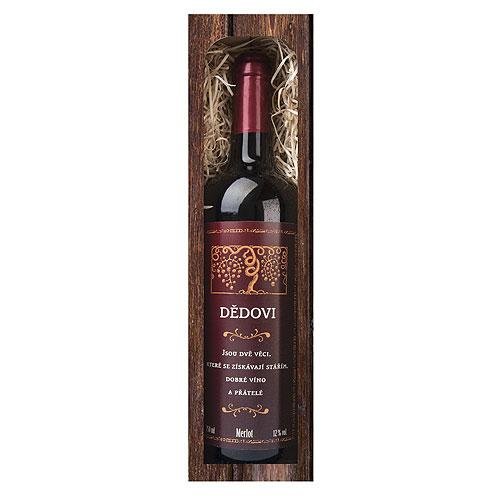 Bohemia Gifts Dárkové červené víno 0,75 l pro dědečka - Merlot