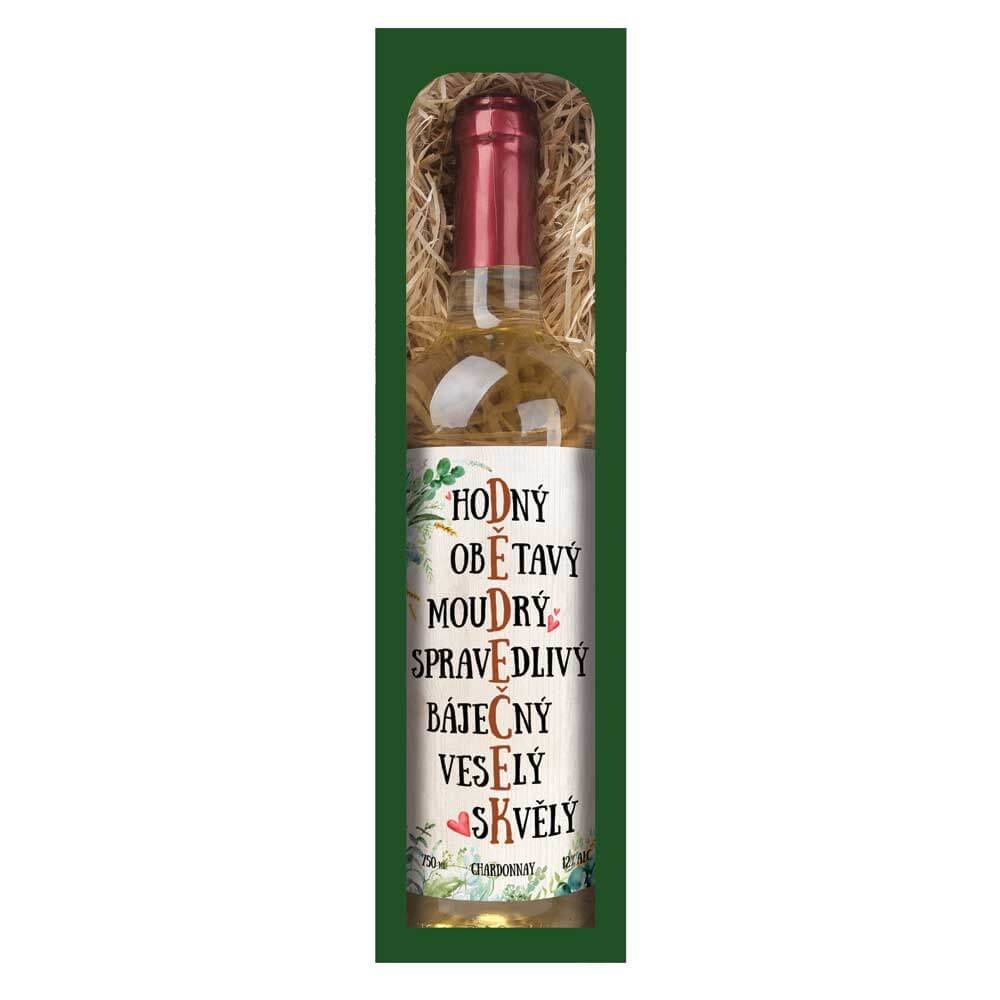 Bohemia Gifts Dárkové bílé víno 0,75 l pro dědečka - Chardonnay