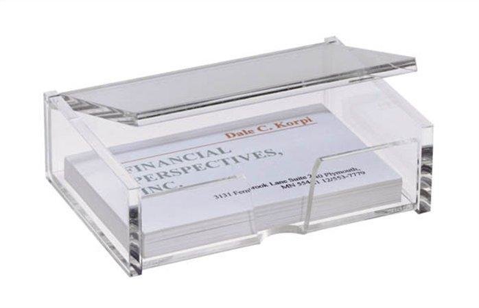 Transparentní akrylový materiálUzavíratelné víkoKapacita 80 ks vizitek 90x58 cm przeczytaj całość
