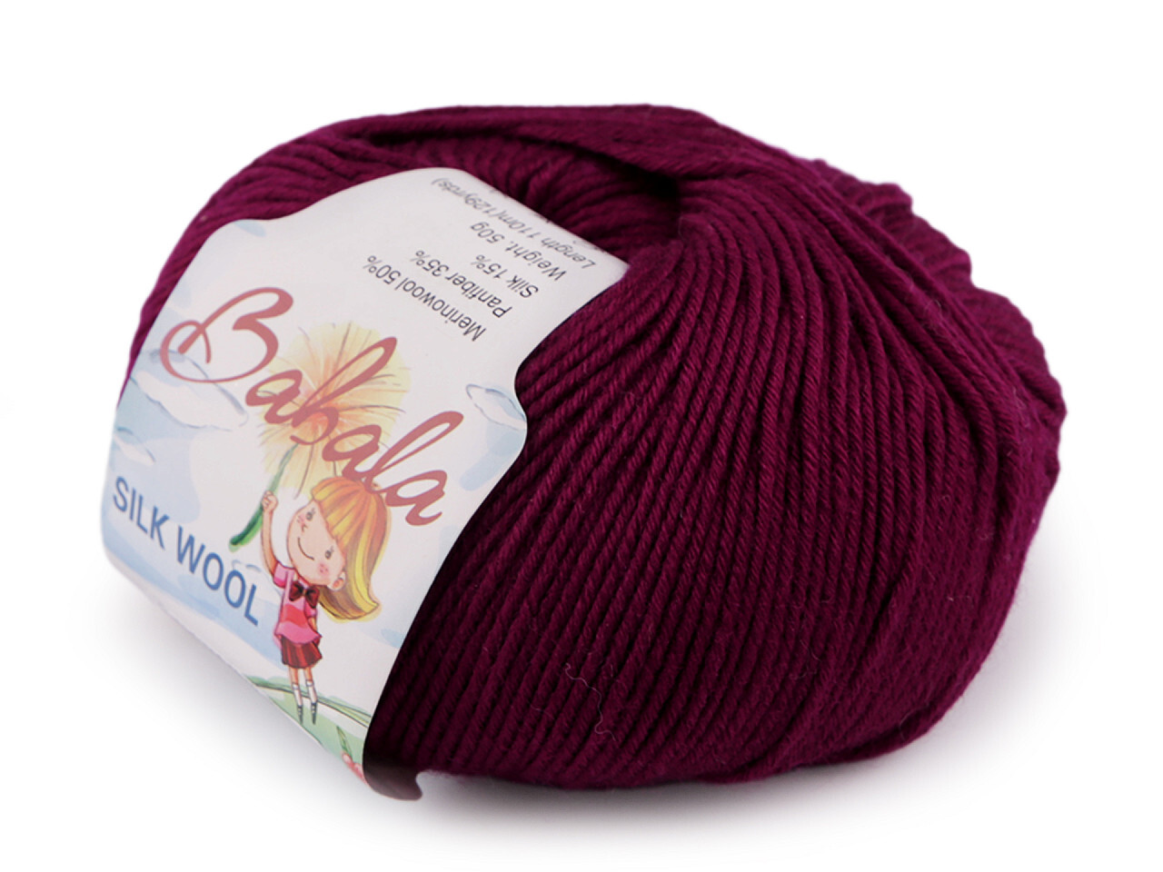 Pletací vlněná, hedvábná příze Babala 50 g - 1 ks - 7 (013) vínová