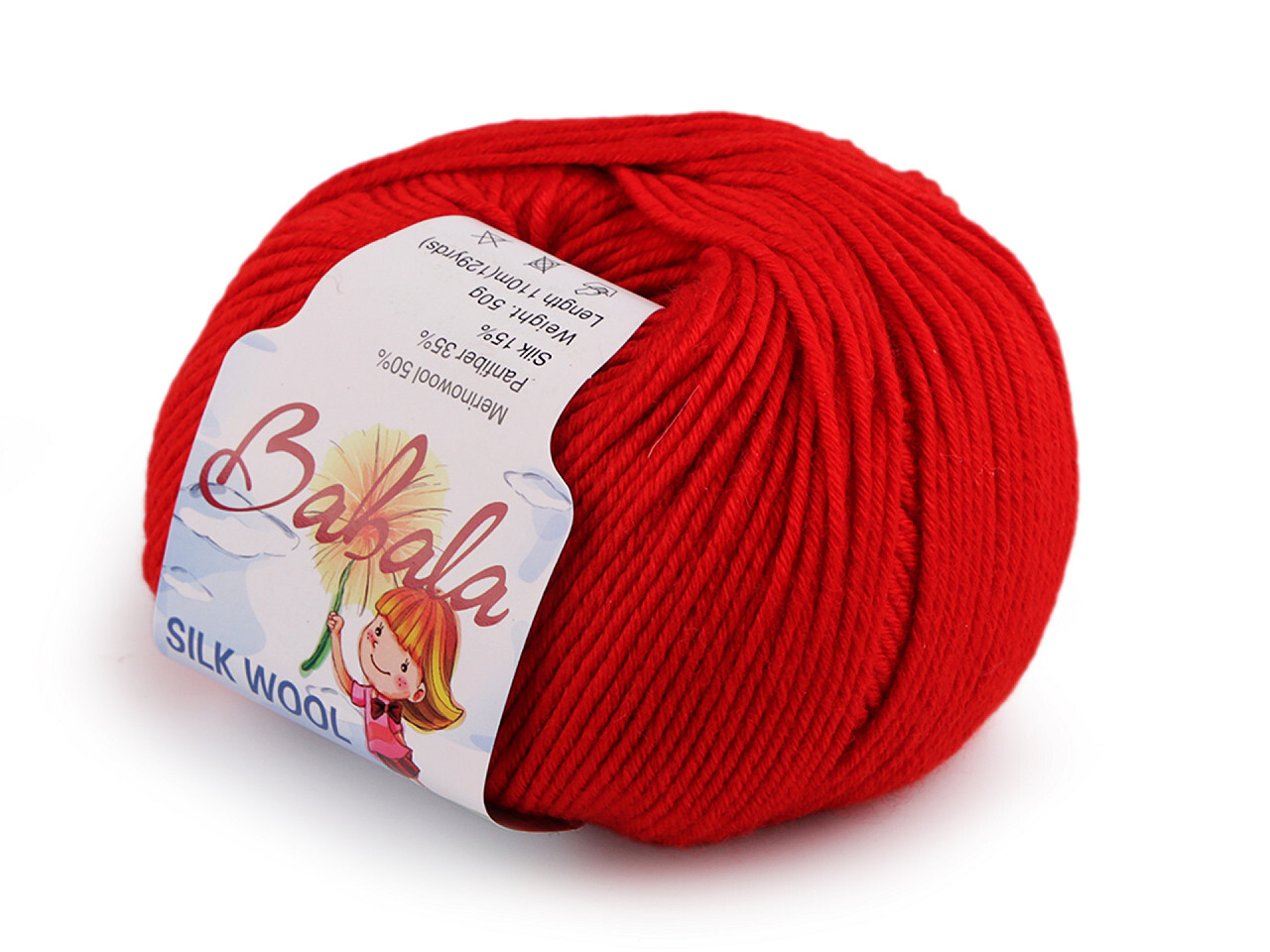 Pletací vlněná, hedvábná příze Babala 50 g - 1 ks - 6 (023) červená