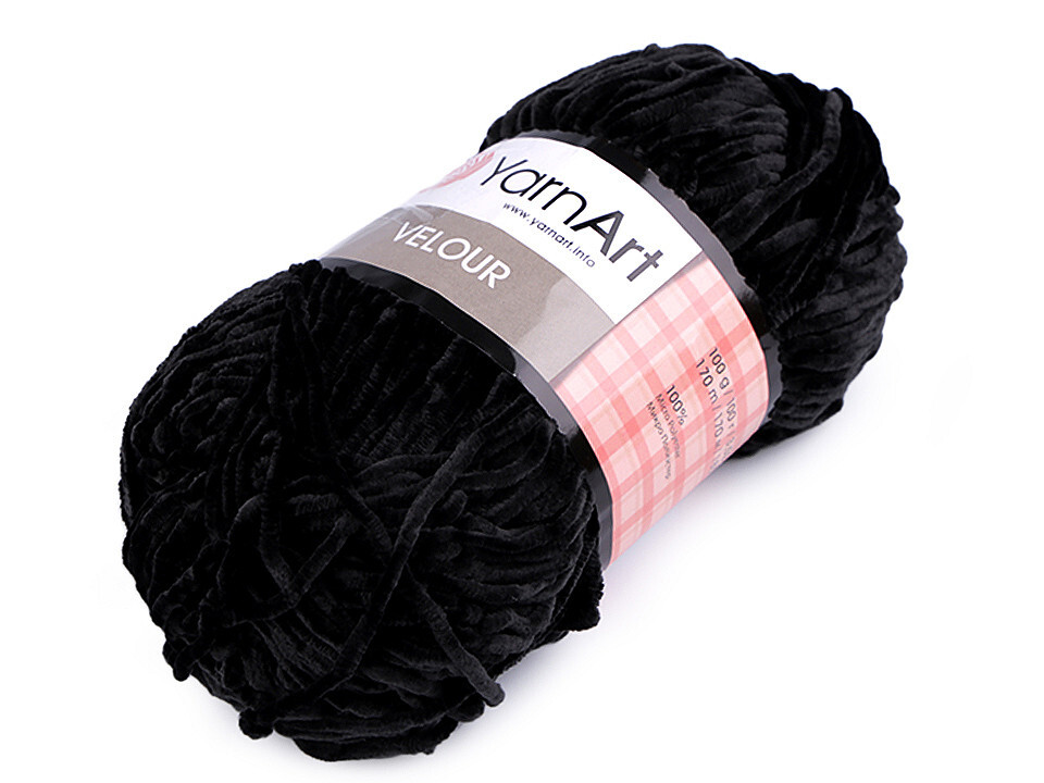 Pletací žinylková příze Velour 100 g - 1 ks - 8 (842) černá