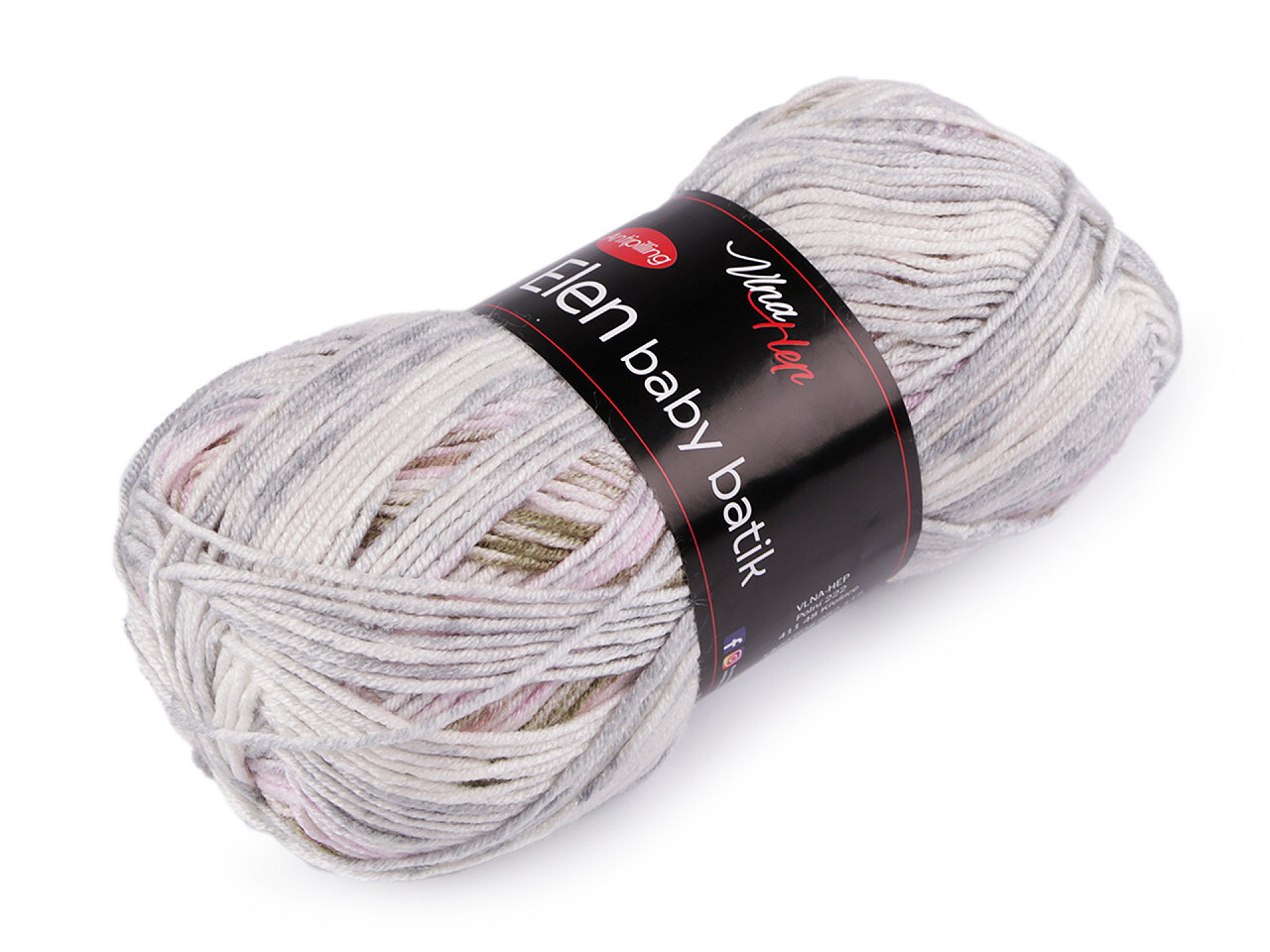 Pletací příze Elen baby batik má zajímavé melírované provedení, které dodá všem vašim výrobkům poutavý vzhled. Díky antipillingové úpravě se nemusíte bát žmolkování. Příze je jemná a příjemná na dotek. Hodí se na pletení svetříků, čepic, šálů, nákrčníků i dětských věcí.