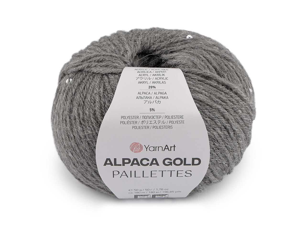 Pletací příze Alpaca Gold s flitry 50 g - 1 ks - 7 (9304) šedá