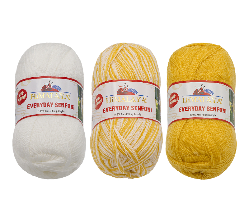 Příze HiMALAYA EVERYDAY SENFONi - žlutá, bílá - 100g / 196 m - balení 3 x 100g