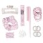Sada obsahuje:Růžová saténová gumička do vlasů 1 ksSkřipec do vlasů 1 ksGumička do vlasů 10 ksSponka do vlasů 25 ksSpirálová gumička do vlasů 4 ksElastická gumička do vlasů 15 ksHřeben 1 ksGel na vlasy Sleek & Set (Baby Hair Gel) 12 ml przeczytaj całość