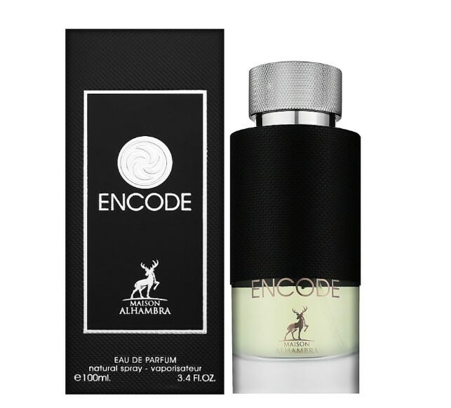 Perfumowana woda dla mężczyzn Encode marki Alhambra to połączenie tradycyjnych i nowoczesnych składników. Pikantny czarny pieprz, świeży bergamot i ziołowy zapach szałwii w sercu są uzupełnione zmysłowym aromatem skóry, a drzewne akordy wetiweru nadają kompozycji równowagę i nutę luksusu. Kremowy aromat kakao został wzbogacony paczulą i ambroxanem, a baza owiana jest suchym, bursztynowo-drzewnym woalem. Świeży, korzenny zapach, ukryty w eleganckim, schludnym czarnym flakonie, jest zaproszeniem do przygody. Ten zapach jest przeznaczony dla nowoczesnych, pewnych siebie mężczyzn w każdym wieku. Zapach został wprowadzony na rynek w 2022 roku.