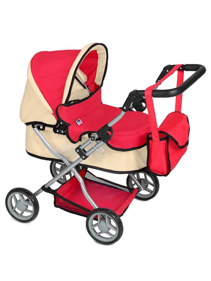 Hluboký kočárek pro panenky PlayTo Viola červený