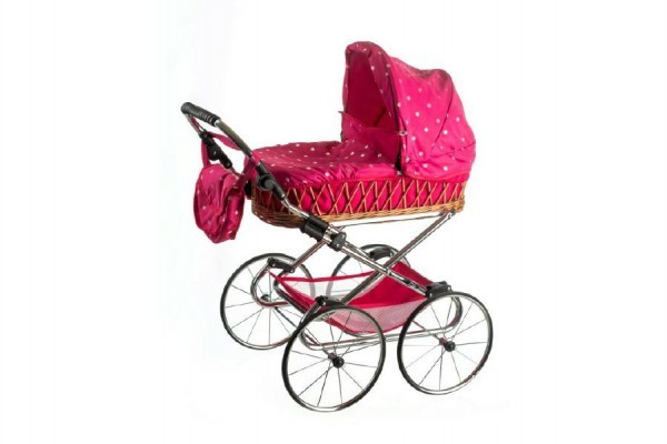 Kočárek v růžové barvě s puntíky a ratanovou postýlkou potěší každou malou holčičku. Stříšku kočárku lze snadno sklopit. Součástí je taška přes rukojeť a praktický košík vespod kočárku. Výška rukojeti: 76 cm, nastavitelná. Vhodný od 3 let. przeczytaj całość